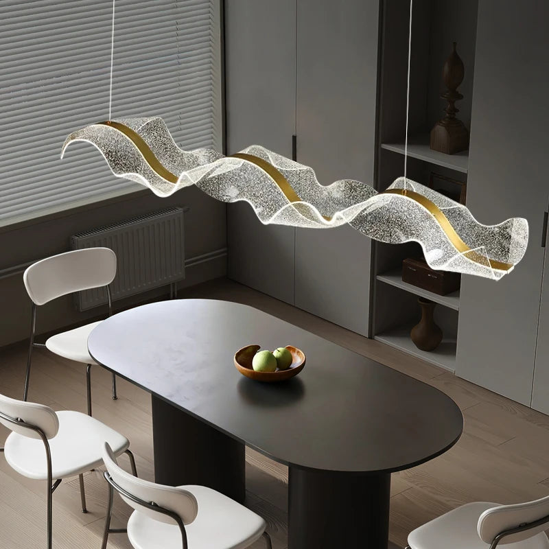 Transform your space with the WAVE Modern Minimalist LED Chandelier — a sleek statement piece designed for dining rooms, bars, offices, and living areas. Its creative long wave design flows gracefully, adding motion and sophistication to any modern interior.